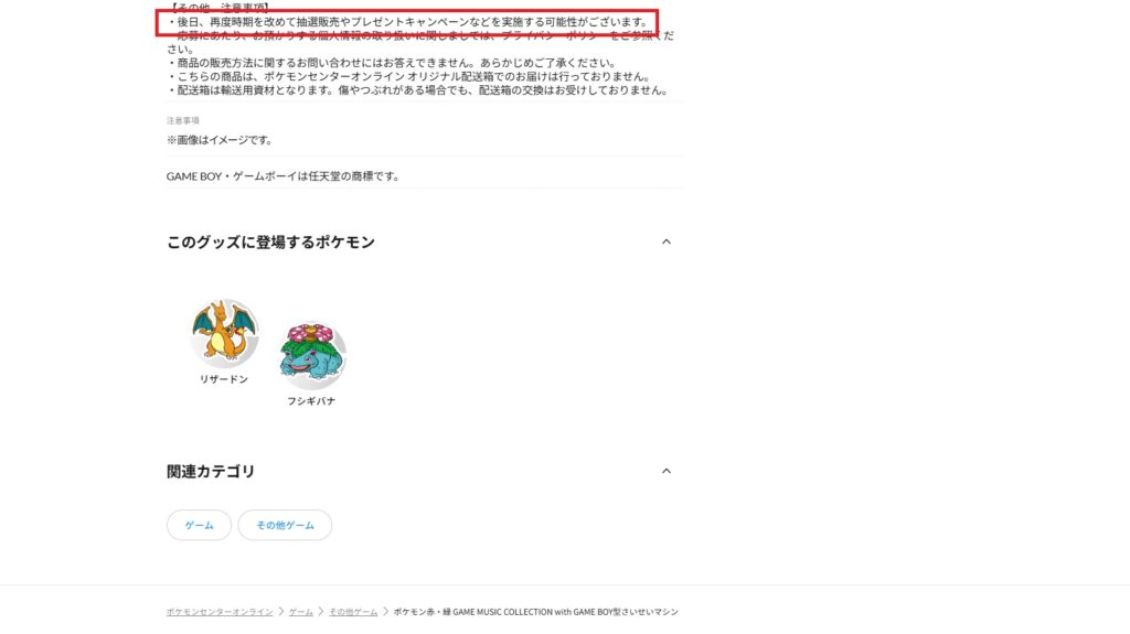 ポケモンセンターオンラインの商品ページを見て後で気が付きました。