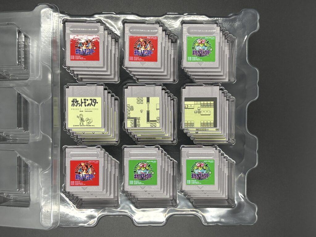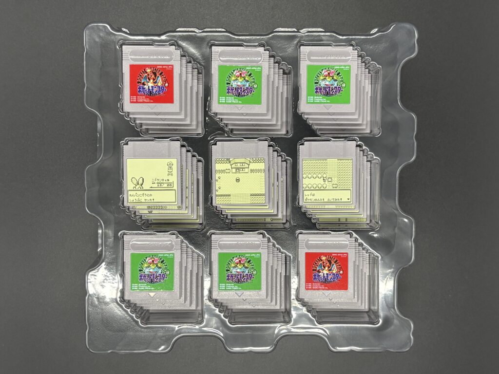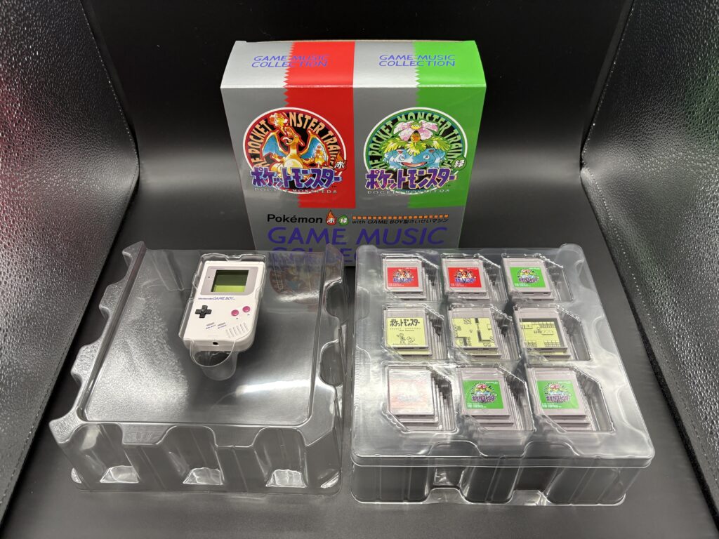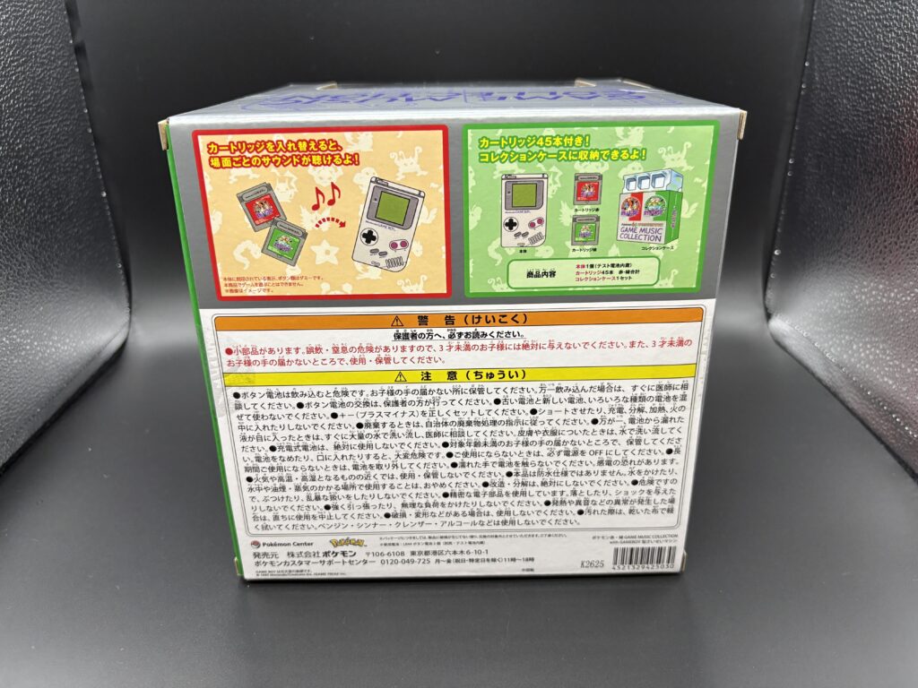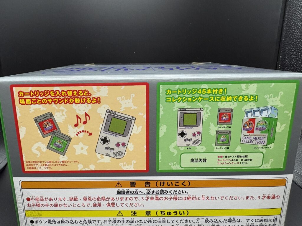 入っているのは、ゲームボーイ型の再生マシン、45枚のカードリッジ、コレクションボックスですね。
