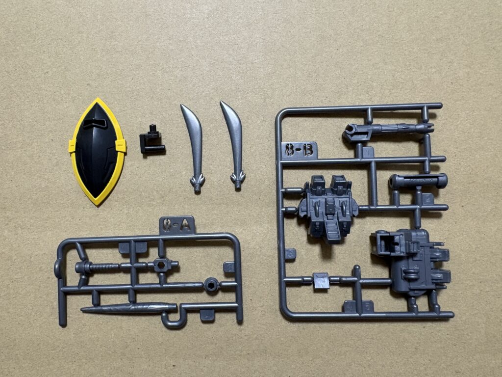 全く彩色がなかったドム用のEXパーツとは違い、ゲルググ用はシールドの黄色が彩色されています。これは嬉しいですね。シールじゃなくてヨカッタ!