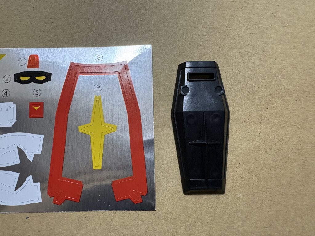 全体的に黒いですね。そしてシールを見れば分かりますが、シールドの周囲の赤がシールになっています。彩色にしてほしかったな・・・。足首のあたりにもシールが使われていますし。