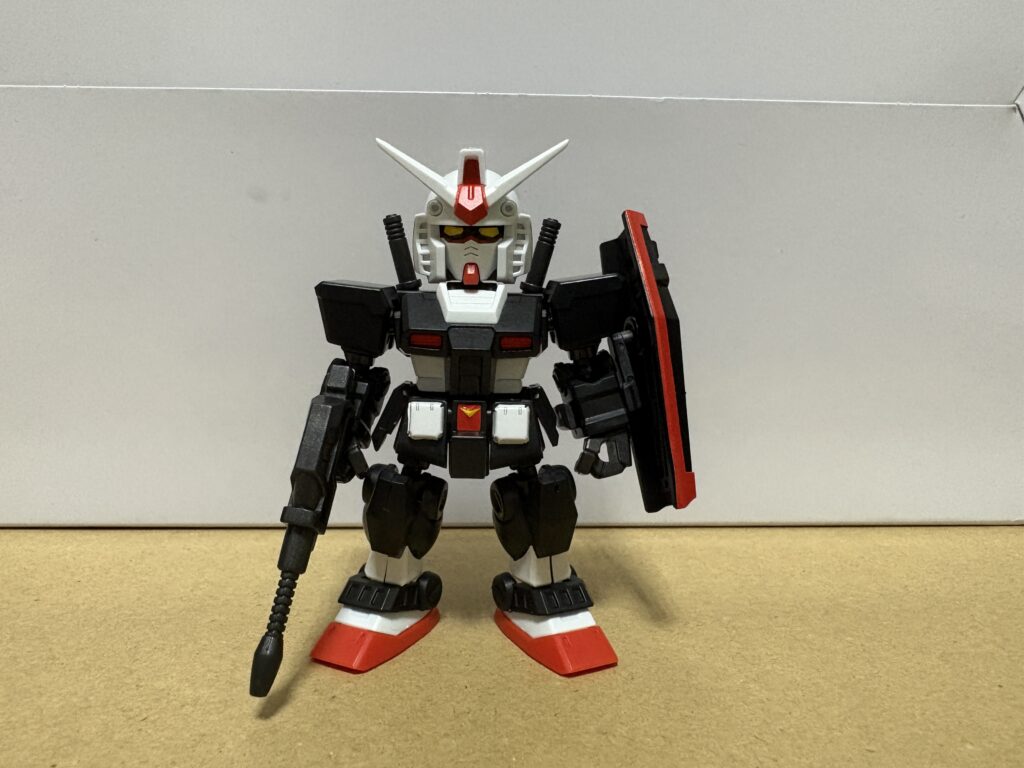 最後は【プロトタイプガンダム】です。今回のラインナップではEXパーツと同様に売れ残りそうな機体ですよね・・・。実際に近所のスーパーではプロトタイプガンダムが2個残ってました。他はドムとゲルググのEXパーツ。