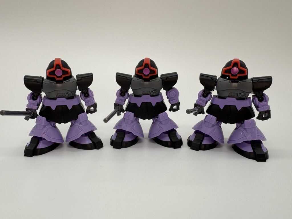 ドムが3機揃いました。3機並べているだけですが、カッコイイですよねぇ。