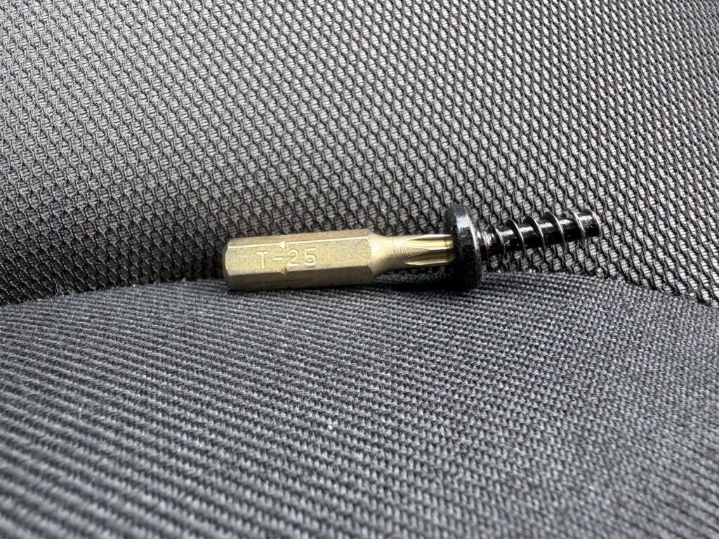 二つ目は、L字になっている工具だと、ネジを回す際にアームレスト内の側面に干渉してしまうため回しにくくなります。下の画像2枚目のような工具がオススメですが、長い工具やL字の工具でも回しにくいだけでネジを外すことはできるため、新しく工具を購入する必要はないと思います。ネジを締めるときに斜めに締めこまない様にだけ気を付けましょう。