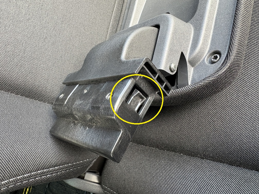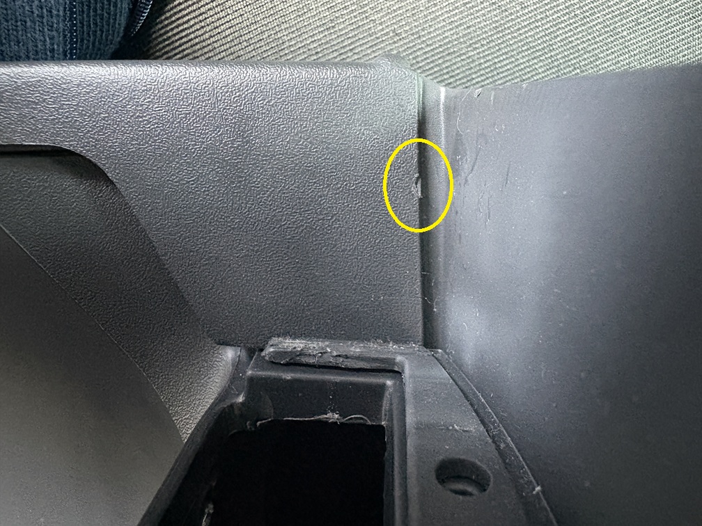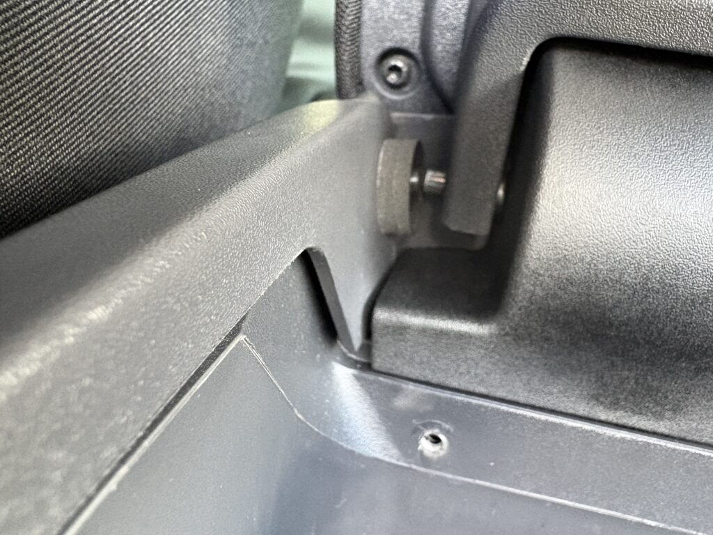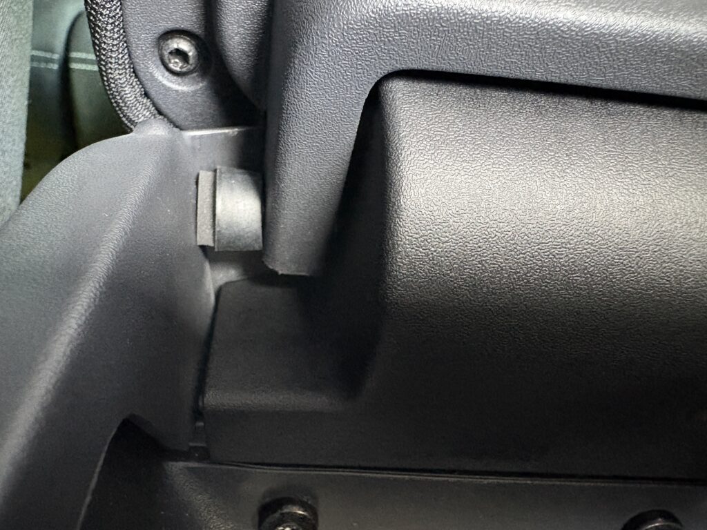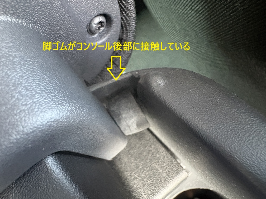 2点目はアームレストをコンソールへ取り付けるとコンソールの側面に脚ゴム接触してしまいます。この状態で使用していくと、脚ゴムがいつか外れてしまう可能性アリ。