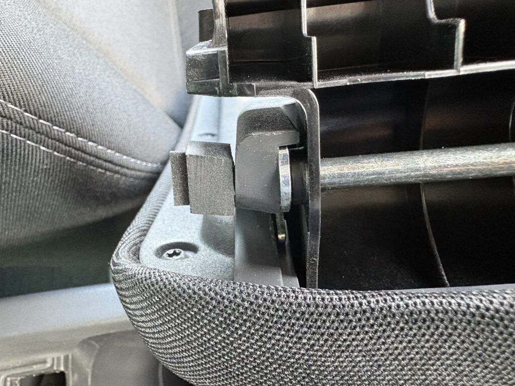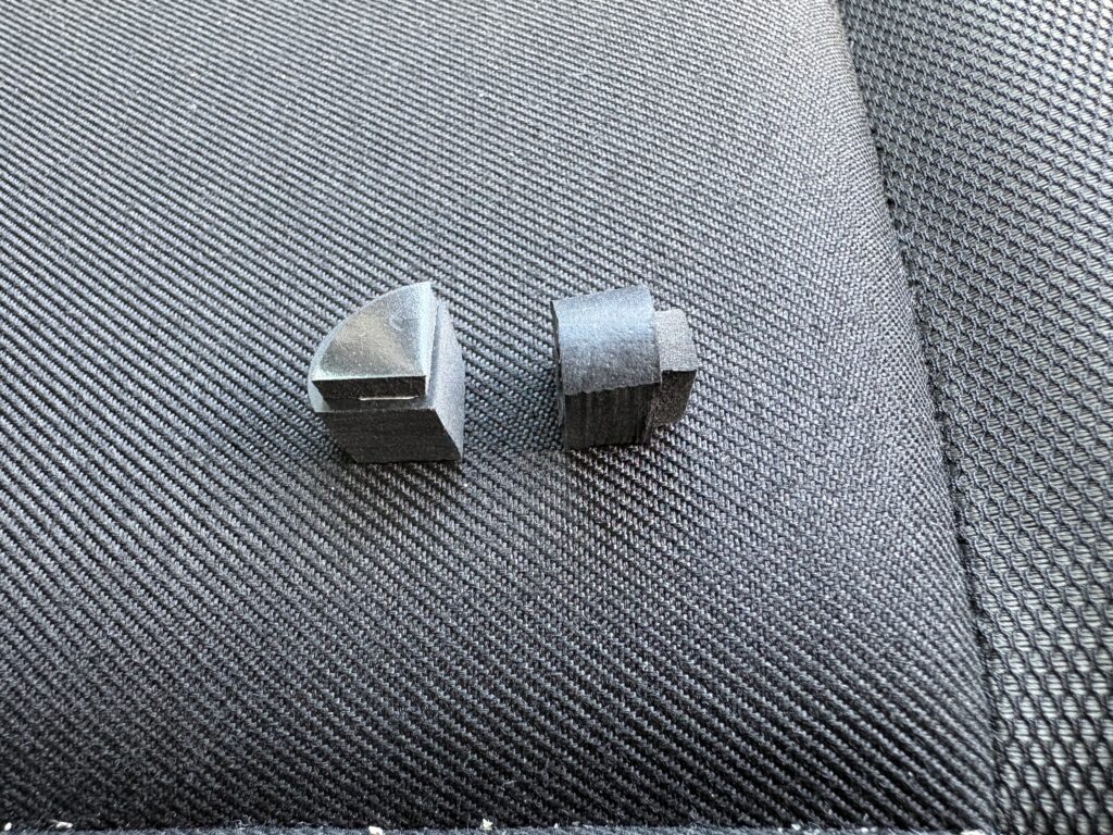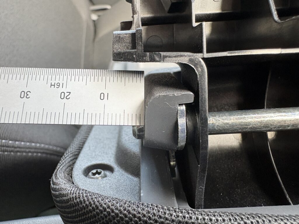 結果は・・・完璧でした。側面もカットしたおかげでコンソールへの接触もなし。アームレストを開閉すると、アームレストと共に軸も一緒に回転するため、脚ゴムも回転してコンソール後部に少し当たりますがまぁゴムなら当たってもいいでしょう。