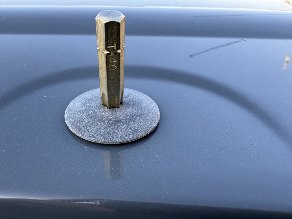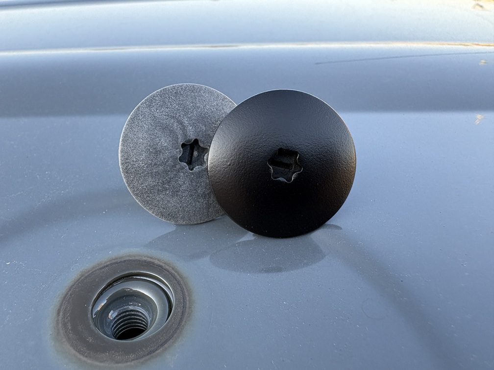 実は交換前の白ボケているルーフボルトは頂いたものの1セットで、約1年前に交換していました。今回取り付けるルーフボルトは頂いたルーフボルトのもう1セットになります。さらにそのルーフボルトを私がスプレー缶で塗装したものになります。