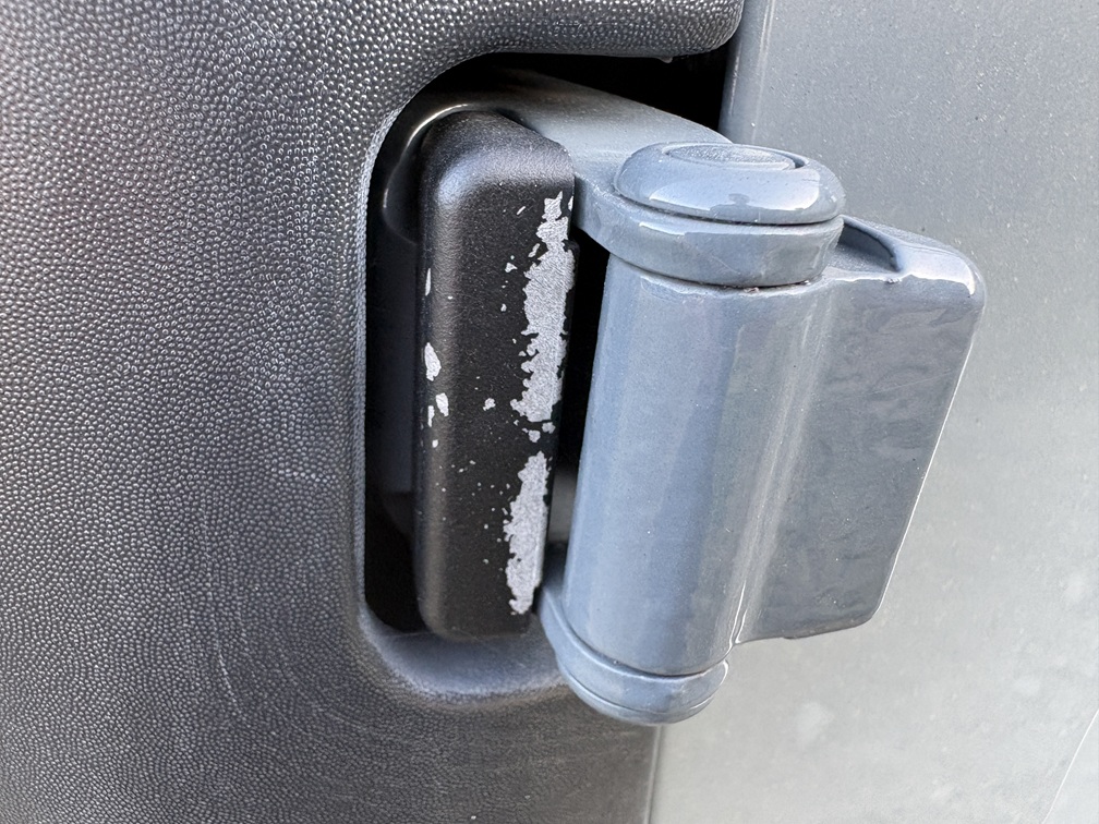 正式名称は分かりませんが、バックドアのヒンジ部分にも未塗装樹脂が使用されております。今回はバックドアストッパーと呼ばせてもらいます。