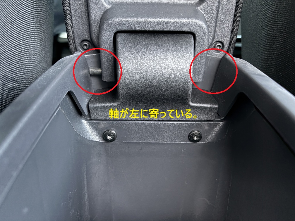 アームレストを開け閉めする際に軸になる金属の棒があるのですが、その軸が開け閉めの度にだんだんズレて、コンソールの側面に接触していました。