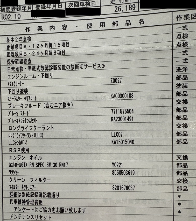 ん~、まぁこんなもんですかね。次に2回目の車検時(2025年10月時)はこちら。