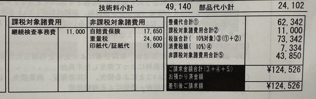 次に2回目の今回の車検時(2025年10月時)の明細です。