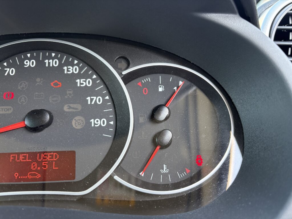 2点目は燃料メーターです。今年に入ってからですが、ある日ガソリンを満タンに入れた後にエンジンをかけたら燃料メーターの針が満タンの手前で止まっているんですね。5年ちょっとカングーに乗ってきて初めての症状です。
