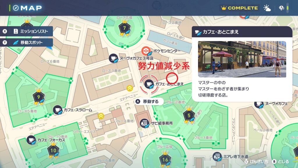 ワイルドゾーン9の上側の広場へ行くには「ヌーヴォカフェ3号店」から下の画像のようなルートで向かいます。「ヌーヴォカフェ3号店」はワイルドゾーン7の下にあります。