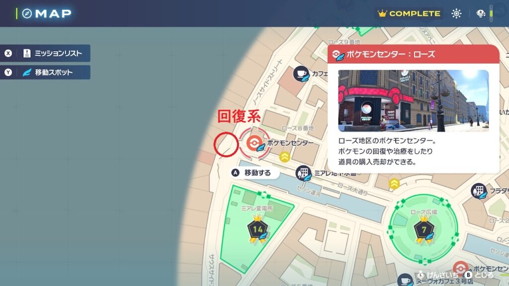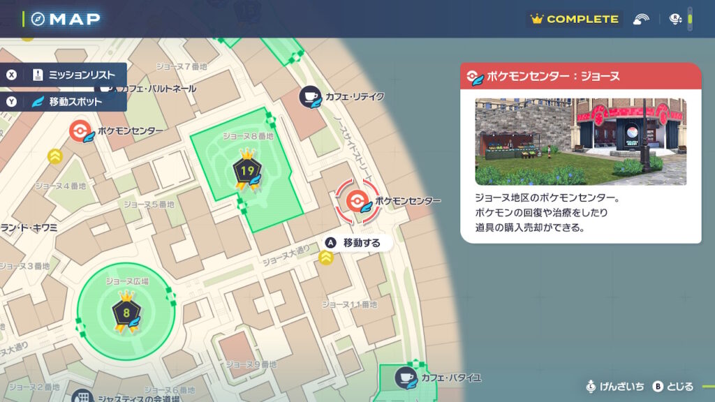 「ポケモンセンター:ジョーヌ」はワイルドゾーン19の右側にあります。