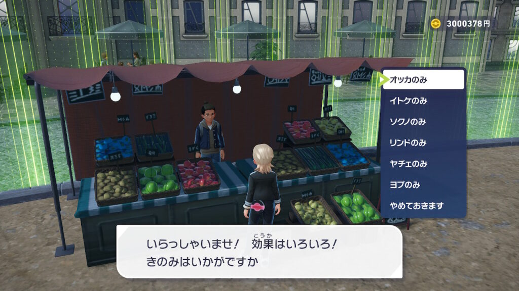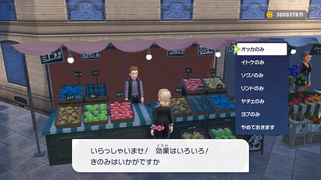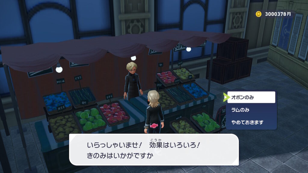 こちらのおじさんは「オボンのみ」「ラムのみ」以外回復系を販売しています。