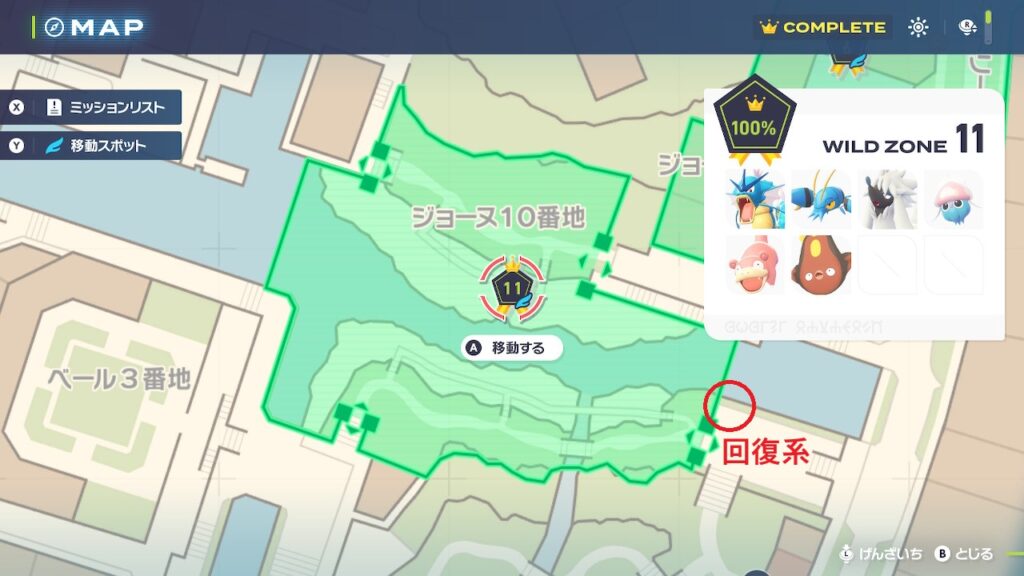 こちらはマップからワイルドゾーン11へ移動すればすぐ目の前へ移動できるので歩く距離が少なくオススメです。