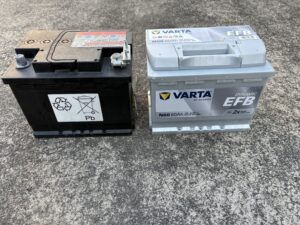 持っていく際のバッテリーの写真を撮り忘れてしまったので、過去に撮った写真で。こちらはカングーで使用していたもの。