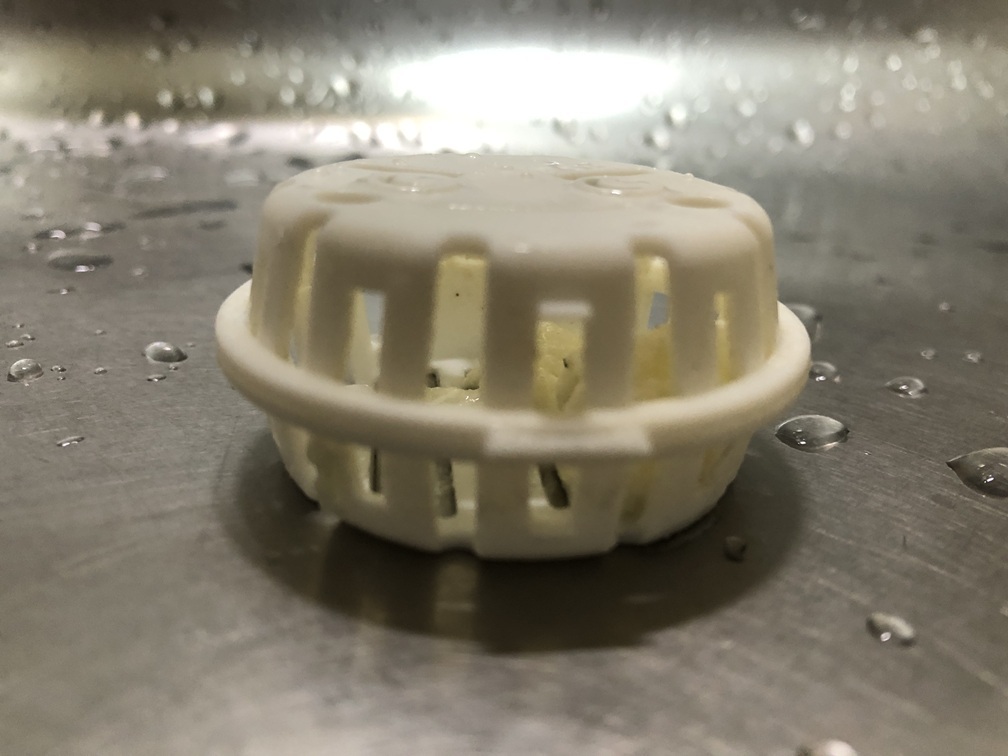 本日ゴミ受けに取り付けている使い捨てのネットを交換した際に、ゴミ受けやワンに少しですがヌメリがあることに気が付きました。1週間ほど前からヌメリ取りの錠剤がほとんどなくなっていたことは知っていたので、交換時期になったと思いカートリッジを交換することにしました。