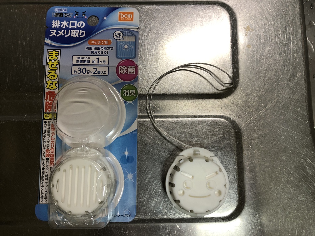 私が購入したものは、DCMブランドの「排水口のヌメリ取り」という商品です。あの「激落ちくん」との共同企画らしいです。